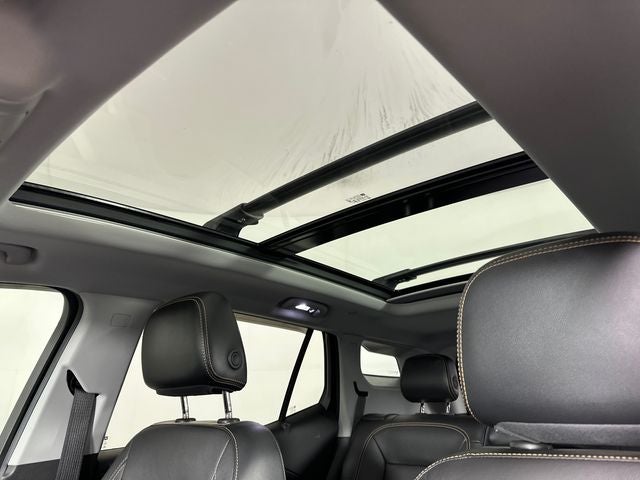The Terrain SLT's bold, athletic stance is complemented by the Elevation Edition's distinctive black exterior accents, including a darkened front grille, black mirror caps, and 19-inch gloss black aluminum wheels. This eye-catching style is further enhanced by the Skyscape power sunroof, which floods the cabin with natural light and fresh air.