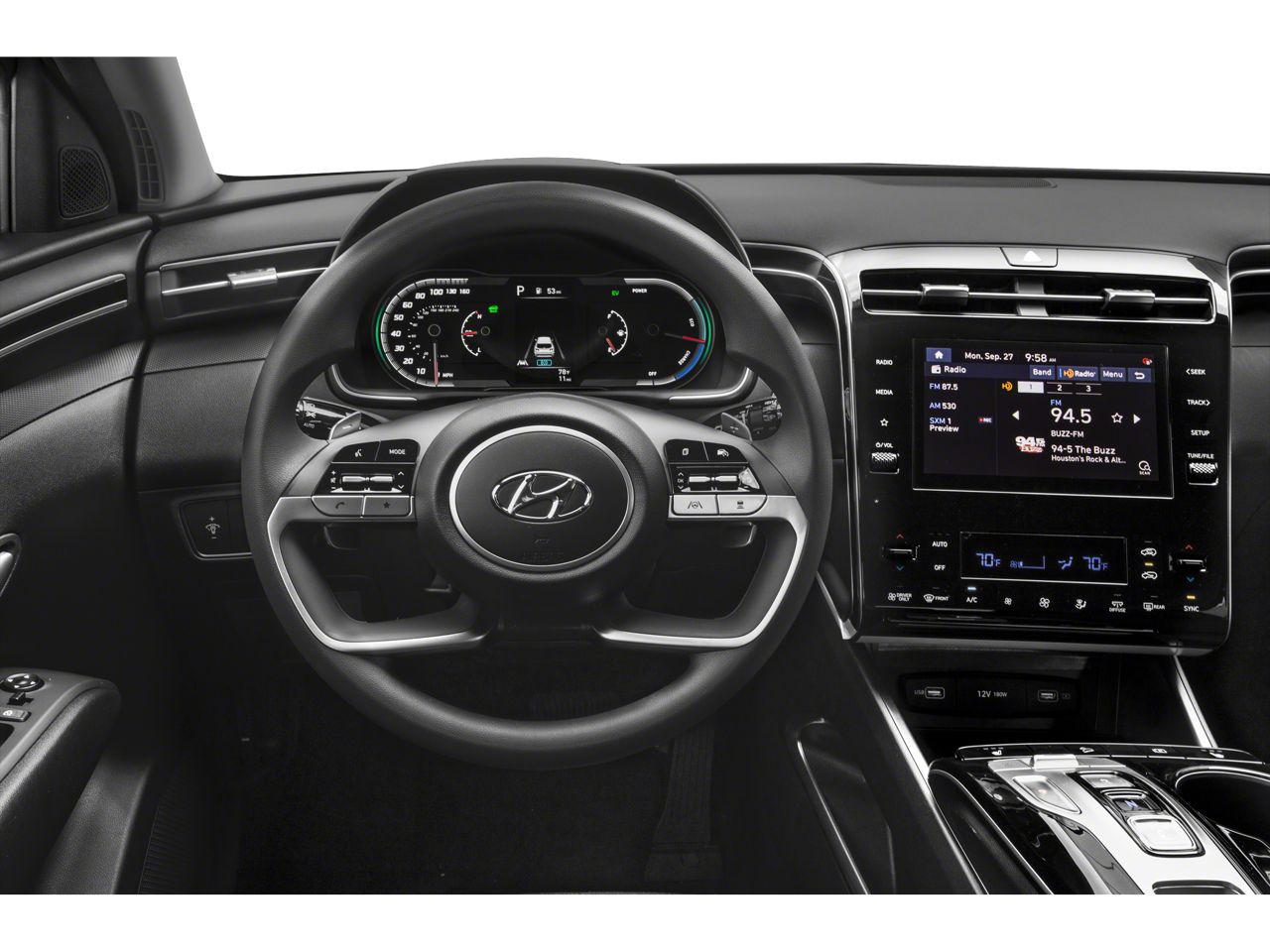 Slip behind the wheel and experience the refined comfort of the Tucson Hybrid. The cabin is appointed with high-quality materials and thoughtful design elements, creating a serene and inviting environment. Enjoy the convenience of dual-zone automatic climate control, the connectivity of Apple CarPlay and Android Auto, and the added security of advanced safety features like Blind Spot Warning and Rear Cross-Traffic Alert.