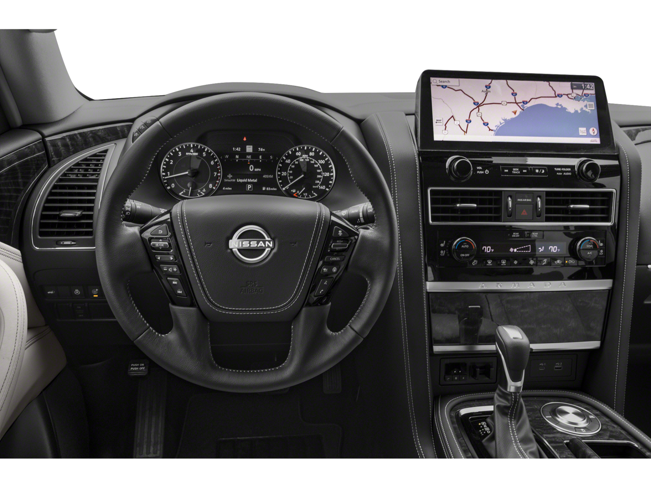 - Radio: NissanConnect w/SiriusXM -inc: Alexa Built-in, wireless Apple CarPlay, Android Auto, Nissan door to door navigation, 12.3" color display w/multi-touch control, SiriusXM Traffic and Travel Link w/3 month complimentary trial access, NissanConnect services powered by SiriusXM, Bluetooth® hands-free phone system, hands-free text messaging assistant and Wi-Fi hotspot